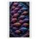 A visionary ceramic-inspired artwork depicting a fantastical school of alien fish, the “Chroma-Fin Drifters.” Each fish is rendered with intricate sculptural detail, their crystalline, iridescent glazes glowing in vibrant hues of pink, orange, teal, and violet. Their glossy, jewel-like eyes and meticulously patterned scales suggest bioluminescence and otherworldly origins. The school drifts across a dark, textured backdrop resembling a cosmic abyss or nebula, enhanced with shimmering metallic and crystalline accents. This high-concept design evokes alien biodiversity, deep-space wonder, and the beauty of sci-fi-inspired fantasy worlds.