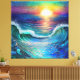 Invite the calm of the sea into your home with this surreal seascape piece, where a beautiful blend of blue hues and opal and jade colored waves meet the warmth of a dreamy sunset.