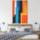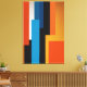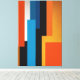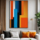 This abstract piece features vertical blocks in vibrant tones of orange, blue, black, and white, creating a harmonious and striking composition. Perfect for modern spaces, it radiates energy and balance through colour and geometry.