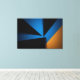 Triangular shapes in blue, black, and orange meet in a bold composition. Light and shadow create depth in this minimalist geometric art. Ideal for those seeking modernity and contrast in contemporary decor. A piece that balances energy and sobriety with mastery.