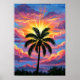 Let the colours wash over you. This artistic poster captures the stunning beauty of twilight with a bold, painterly style. A silhouetted palm stands sentinel as the sun bursts through dramatic clouds, casting intense rays across a sky saturated with vivid, almost neon, hues. It's a vibrant celebration of light and colour, perfect for adding a touch of tropical heat and modern artistry to your space.