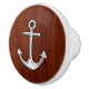 Chrome Anchor on Nautical Mahogany Grain Print Ceramic Knob
