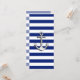 A silver chrome like anchor applique on a horizontal navy blue style stripes print decor for a perfect nautical look.