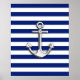 Chrome Anchor on Navy Stripes Poster