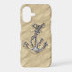 A modern nautical silver chrome like applique style on a sandy beach decor for a custom phone case everyone on, or off the boat will enjoy.