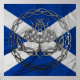 The symbol of Scotland, the Guardian Thistle, in a chrome Celtic Knot design overlaying the Flag of Scotland.