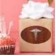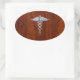 Chrome Like Caduceus Medical Symbol Mahogany Brown Oval Sticker