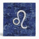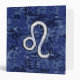 A silver chrome like Leo zodiac symbol on a navy blue digital camouflage background. A modern urban racy design for a great custom birthday gift idea.