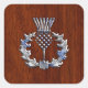 Chrome Like Mahogany Wood Grain Scottish Thistle Square Sticker