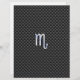 A chrome like Scorpio zodiac symbol on a charcoal black carbon fibre texture print decor. A modern urban racy design for a great custom birthday gift idea.