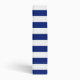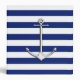 A silver chrome like tall anchor design on a navy blue stripes decor. A modern nautical gift.