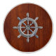 Chrome Nautical Wheel Mahogany Grain Print Ceramic Knob