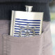 Chrome Nautical Wheel on Navy Stripes Print Hip Flask