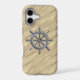 A modern nautical silver chrome like applique style on a sandy beach decor for a custom phone case everyone on, or off the boat will enjoy.