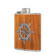 Chrome Nautical Wheel on Teak Print Hip Flask