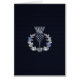 A chrome like Scottish thistle applique design on a navy blue carbon fibre style print.