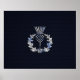 A chrome like Scottish thistle applique design on a navy blue carbon fibre style print.