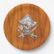 Chrome Silver Pirate on Teak Veneer Decor Paper Plate