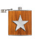 A modern nautical style silver chrome like applique on a teak wood print decor for a fine custom flask gift.