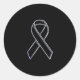 Chrome Style Black Ribbon Awareness on Black Classic Round Sticker