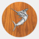 Chrome Style Marlin on Teak Wood Decor Classic Round Sticker