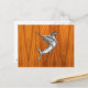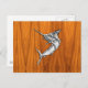 Chrome Style Marlin on Teak Wood Decor Postcard