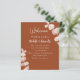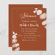 Arrière - plan orange foncé, décoré de tiges d'eucalyptus, sprigs. Personnalisez et ajoutez vos noms et les détails.