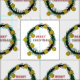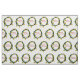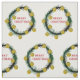 Christmas fabric with watercolor green wreath and yellow toys.