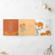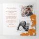 Botanical outline graphic drawing of chrysanthemum orange flowers with green leaves on a personalized wedding square wedding program. Customize with your own bride and groom's name and wedding date, wedding ceremony, love story, wedding party and thank yous plus three of your own photos, one full page centre and two on your wedding story page. Perfect for a fall orange wedding. Design features a print of graphic outline drawing of chrysanthemum flowers by Sarah Trett for www.mylittleedenweddings.com only on available on zazzle.