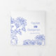 Botanical outline graphic drawing of chrysanthemum blue and white on a personalized wedding square wedding program. Customize with your own bride and groom's name and wedding date, wedding ceremony, love story, wedding party and thank yous plus three of your own photos, one full page centre and two on your wedding story page. Perfect for a blue coloured or fall purple wedding. Design features a print of graphic outline drawing of chrysanthemum flowers by Sarah Trett for www.mylittleedenweddings.com only on available on zazzle.