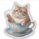 Chubby Cat in a Teacup Sticker | Cute Floating Hea
