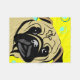 Pug with a black face and yellow background with circles