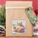 Meet the ultimate chill cat! This stylized cartoon design features a chubby tabby cat with soft peach fur and gentle orange stripes, cozily lounging on a tiny plush couch. With bright green eyes, a smudge of a nose, and tiny round glasses resting at the tip, this playful feline radiates quirky charm. The clipboard adds a hint of feline wisdom, while the curled tail and tucked paws complete the cozy scene. Rendered in a glossy finish with a colourful sticker-style border and rounded corners, this design is a perfect pick for cat lovers with a sense of humour.