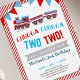 Célébrez votre petit anniversaire d'une seconde avec notre chugga chugga Invitation à deux trains de fête. Cette mignonne invitation d'anniversaire de train comporte un train sur un design de couleur rouge, gris et bleu. Le thème de couleur est entièrement modifiable ! cliquez sur "modifier l'arrière - plan" pour modifier le thème de couleur. Cette invitation de choo choo train est parfaite pour la fête du deuxième anniversaire de votre garçon.