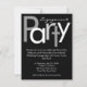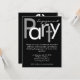 Cute engagement invitation, customize with any text. Fun and cheerful block style lettering in bold high contrast black and white typeface on black background. Sleek contemporary design is perfect for marriage and wedding engagements. Customize online with your event details.