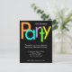 Cute 30th birthday invitation, or customize with any age. Fun and cheerful block style lettering in bright orange, blue, purple, green and yellow on black background. Sleek contemporary design is perfect for a man or woman's party invitations. Customize online with your event details.