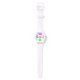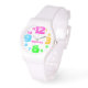 Fun white background with bright and colourful rainbow of neon fluorescent chunky numbers in hot pink, teal, green and orange, this personalized watch is eye catching and easy to read. the 3, 6, 9, and 12 are larger than the other numbers. Cute, trendy unique modern and fun women's white sport watch!