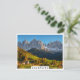 Church and village with mountains landscape postcard
