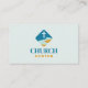 A clean business card great for churches that has a logo icon design with a cross at the end of a river.