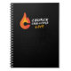 Church Challenge Live KINGDOM WISDOM FREEDOM Notebook, showing an orange flame, with CHURCH CHALLENGE LIVE in white and orange typography. There is also a subtle Kingdom Wisdom Freedom print underneath.