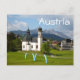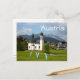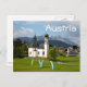 Postcard of the characteristic church of Seefeld village with the Alps mountains in the background. It is a holiday and ski resort in Tyrol in Austria with the tekst: 'Austria'.
