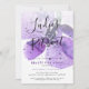 A modern invitation perfect for a church ladies' retreat, conference, or event. This design has an oversize violet watercolor orchid flower as the main feature, overlaid with the phrase "ladies' retreat" (which can be edited) in sophisticated hand lettered black font, and event details (including event theme, guest speaker etc.) in black and purple at the bottom third of the invitation. The back of the invitation is in violet.