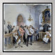 Vintage fine art image of pastor pre.ching in his church as people give an offering. Artwork by Norwegian painter Knud Bergslien>