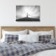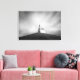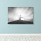 Canvas print of a small church or chapel on a hill under motion-blurred clouds in the sky in black and white creating a very strong conceptual image of faith in rough times.