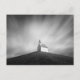 Photo postcard of a small church or chapel on a hill under motion-blurred clouds in the sky in black and white creating a very strong conceptual image of keeping faith in rough times.