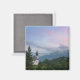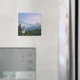 Souvenir photo magnet with colourful clouds in the sky during sunset over the Maria Gern church with a view towards big Watzmann mountain in the German Alps near the border with Austria in Berchtesgaden in Bavaria, Germany.