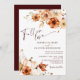 Chute Dans L'Amour Burgundy Rust Boho Faire-part de mariage. Elégante faire-part de mariage rustique avec des fleurs automnales peintes à la main, des citrouilles et des feuilles automnales en blanc crème, beige, orange rouille et terre cuite avec texte rouge foncé bordeaux "tomber amoureux" et couleur bordeaux dans l'arrière - plan. Terme faire-part de mariage floral saisonnier parfait pour la fin de l'été et mariage de automne. Contactez-moi pour les articles correspondants et/ou la personnalisation.