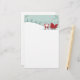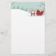 Cette papeterie mignonne de lettre de Noël a une conception au dessus qui a un arrière - plan bleu doux avec un bon nombre d'arbres sur les collines neigeuses. Il y a un bon nombre de neige tombant à l'arrière-plan. Du côté droit, il y a un père noël adorable se tenant prêt son traîneau.