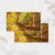 Un sentier surélevé qui serpente à travers la forêt de bouleaux par une journée d'automne ensoleillée. Les troncs noirs et blancs des arbres contrastent avec les feuilles et l'herbe dans toutes les nuances d'or, du jaune pâle à l'orange profond, éclairés par les rayons du soleil qui traversent les branches.