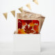 L'automne laisse des sacs de faveur avec un texte simple, "Merci". Des feuilles rouges, oranges et jaunes dorés entourent une feuille d'érable centrale. Le script jaune est imprimé sur la feuille rouge foncé. A utiliser pour les fêtes d'automne, les mariages et les douches.